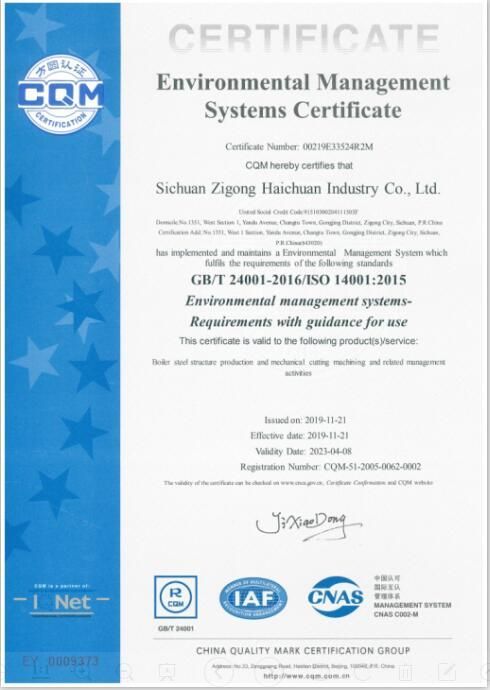 環(huán)境管理體系認證證書(英文版)